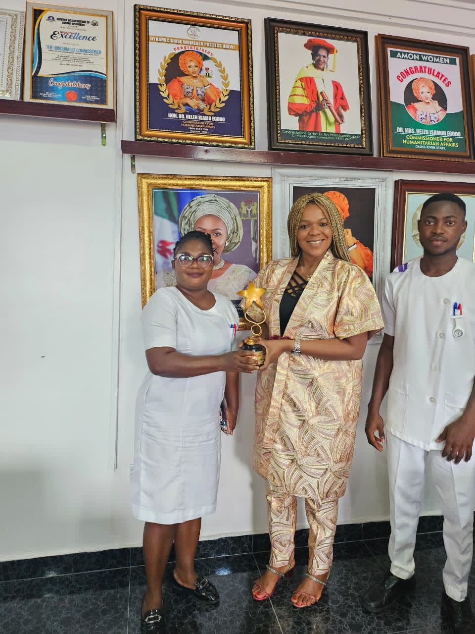 The College of Medical Sciences, of the University of Calabar, on 14th July, 2024, presented an award to Dr. Helen Isamoh-Egodo, Commissioner for Humanitarian Affairs and Poverty Alleviation, in recognition of her outstanding contributions to humanitarian services in the state.